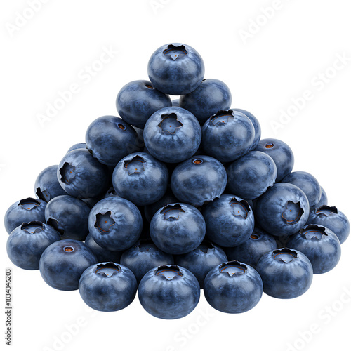 Pyramid stack of fresh blueberries on plain black background for healthy eating