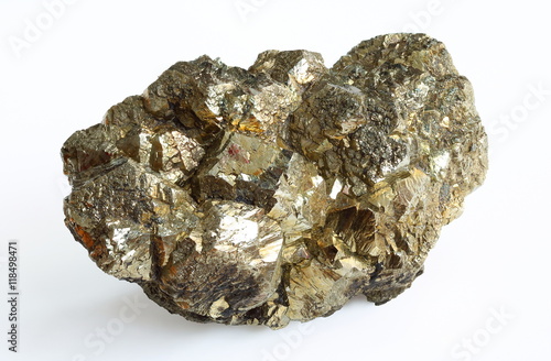Pyrite mineral crystals on white background. Coal pyrite(FeS2)