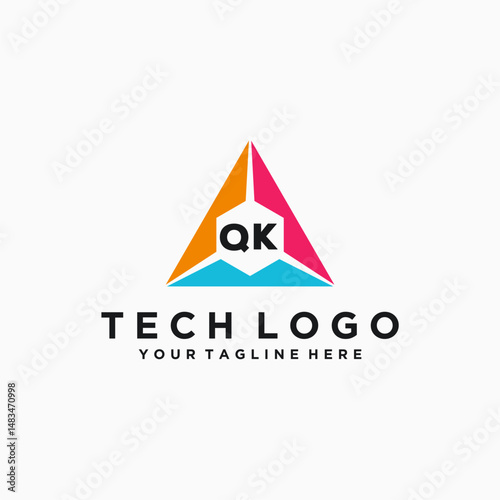 QK Initials Tech Logo Vector Art Icons and Graphics