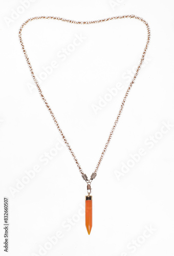 quartz pendant on chain isolated on white background