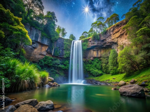 queensland, australia, waterfall, long exposure, photo, landscape, night photography, star, flowing water, nature, travel, tour tourism, scenic, beautiful, majestic, powerful, water feature, natural wonder, night scene, dark sky, milky way, stunning, breathtaking, amazing, picturesque, idylli, serene, tranquil, peaceful, vibrant, colourful, rainforest