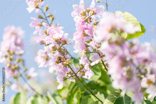 Queens Flower or Inthanin flower in Thailand, Lagerstroemia speciosa, cheerful blooming in park.