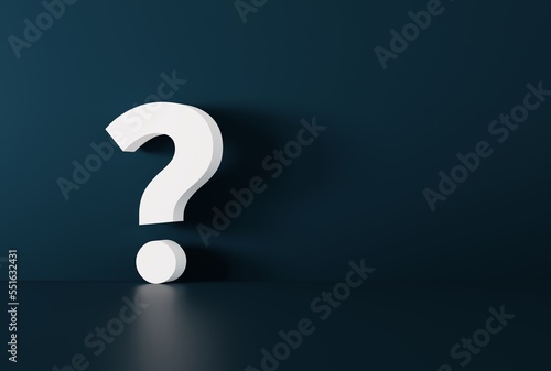 Question mark. Business concept, thinking, caution on business. Question mark on a dark background. 3D render, 3D illustration.