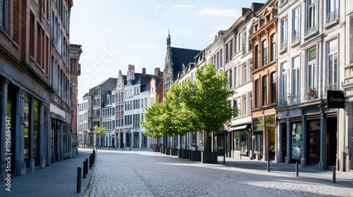 street, building, tree, architecture, urban, city, landscape, sunlight, cobbled, empty, peaceful, residential, facades, window, rooftop, greenery, scene, calmness, design, travel, environment, nature, town, heritage, culture, charme, perspective, sidewalk, community, historical, summer, inviting, picturesque, atmosphere, layout, symmetry, clean, serene, urbanism, exploration, leisure, lifestyle, view, city landscape, photo, beauty, visual, destination