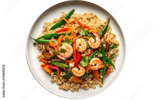 Quinoa And Vegetable Stirfry With Shrimp. Lactose-Free Food On Isolated Transparent Background, Png. Generative AI
