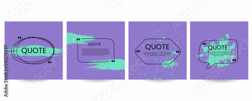 Quote poster set. Hand drawn geometric frame, box collection with double comma sign, bubble speech and quotation place. Blank template for comment or message, creative banner vector isolated set