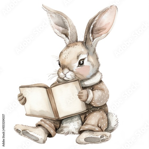 reading, rabbit, animal, book, clean, watercolor, clothing, cartoon, minimal, baby, cute, art, publication, person, watercolor, white background, illustration, drawing, element, easter, vignetting, splash, rabbit, paper, toy, studying, creativity, graphic, mammal, human, story, white, glove, detail, easter bunny, apparel, cut-out, piece, style, ear, hand-painted, isolated, outline, sitting