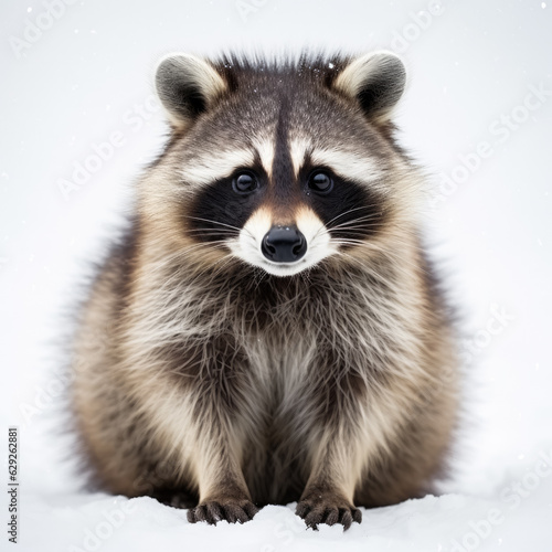 Raccoon in winter isolated on white background