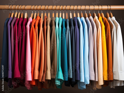 shirt, hang, hanger, rack, rainbow, variety, cotton, dress, clothes rack, bright, store, textile, background, industry, green, many, yellow, orange, blue, red, collection, style, retail, fashion, fabric, shop, colourful, clothes, colours, clothing, symbol, colours, lot, casual attire, wear, choose, wooden, many-coloured, clothes, colours, shopping, sale, market, hanging