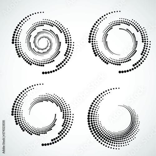 Radial halftone dots in Circle Form for comic books . fireworks Explosion background . Vector Illustration . Starburst round Logo . Circular Design element . Abstract Geometric star rays . Sunburst .