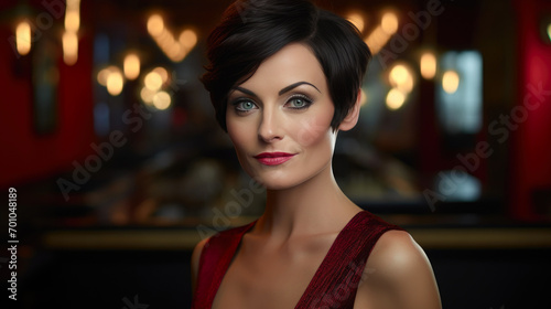 glamourous, woman, 40s, portrait, short hair, iridescent, make-up, bar, satin, blouse, elegance, style, beauty, fashion, nightlife, sophisticated, confident, chic, posh, trendy, attractive, alluring, glamour, stylish, sensual, cosmetic, socialising, graceful, feminine, adult, vibrant, nightclub, mature, radiant, fabulous, charismatic