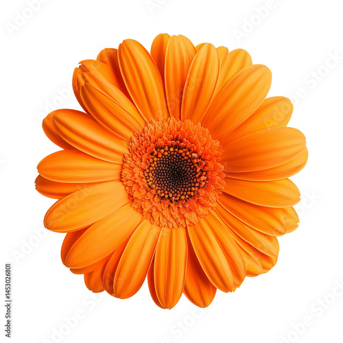 Radiant Bloom: A close-up studio shot showcases a vibrant orange gerbera daisy, its intricate petals unfurling to reveal a dark, textured center. A celebration of floral beauty and vivid hues.