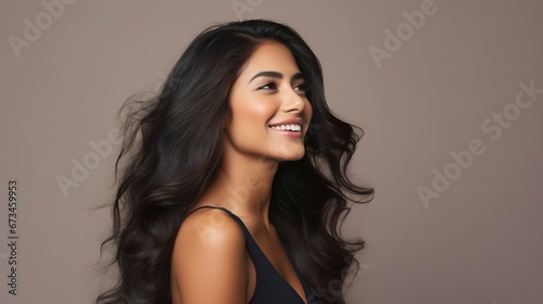 smiling, modern, indian, beauty, woman, portrait, light, studio, background, solid, female, elegant, contemporary, fashion, face, grace, cheerful, cultural, style, traditional, modernity, vibrant, ethnicity, charme, photo, feminine, make-up, model, happy, radiant, bright, youthful, expression, joy, natural, aesthetic, allure, poise, serene, simplicity, ethnic, wellness, smile, elegance, soft, illustration, ai, lifestyle