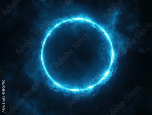 radiant geometric neon blue circle on a dark backdrop, glowing with an ethereal light, capturing a futuristic and mesmerizing visual appeal