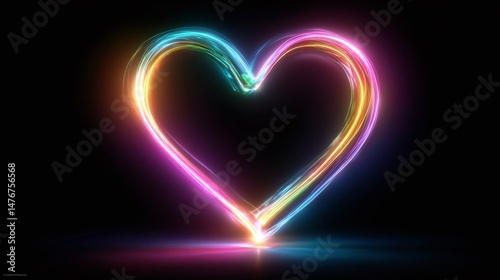 Radiant Heart: A glowing, colorful heart shape against a black backdrop, representing love, light, and digital art. Symbol of connection and emotion.