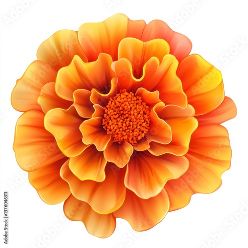 Radiant Orange Marigold Blossom Isolated on White Background Illustration