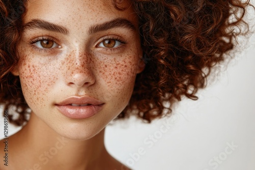 freckle, beauty, portrait, curl, natural, skin, glowing, closeup, diversity, expression, coiffure, youth, cosmetic, vibrant, warmth, face, femininity, charming, confidence, aesthetic, model, feature, softness, joy, fresh, emotion, captivating, elegance, texture, art, photo, style, allure, light