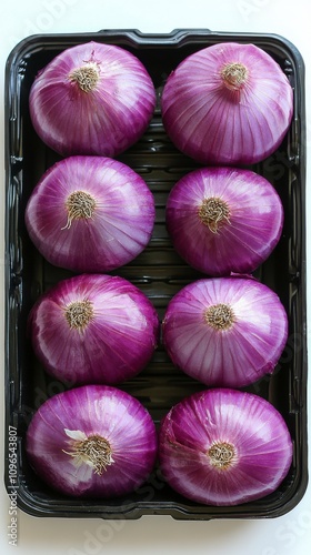 Radiant Purple Onions in a Stylish Tray - A Fresh Food Display