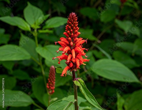 Radiant red pineapple sage blossom amidst verdant foliage in natural setting