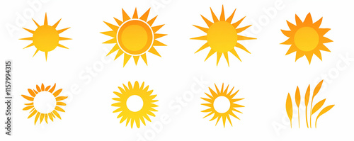sun, icon, summer, nature, warmth, radiant, bright, sunshine, sunny, yellow, design, graphic, illustration, symbol, element, set, collection, vector, clip art, image, art, aesthetic, vibrant, gold, heat, energy, light, day, season, hot, celestial, star, solar, ray, beam, glow, shine, optimism, happiness, positive, joyful, cheerful, spring, autumn, harvest, plant, vegetation, growth, agriculture
