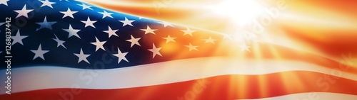 Radiant sun illuminates the american flag, a symbol of freedom and unity sunlit