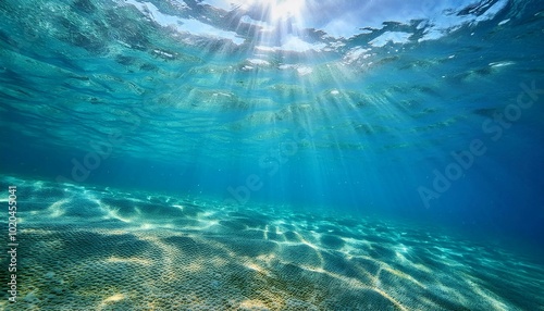 Radiant Sunlight Filtering Through Clear Ocean Water Above a Peaceful Seabed