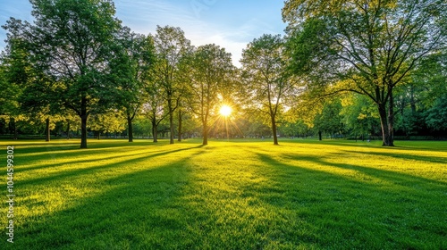 sunrise, park, tree, sunlight, grass, outdoors, nature, landscape, serene, calmness, shadow, bright, vibrant, scenic, beauty, environment, recreation, peaceful, morning, season, rural, foliage, relaxation, freshness, greenery, daylight, clear sky, colourful, flora, sunny, view, harmonic, atmosphere, calming, picturesque, wildlife, exploration, sustainable, refreshing, leisure, calmness, avocation