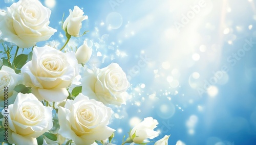 rose, white, flower, bouquet, bloom, blossom, flower petals, floral, nature, beauty, elegant, pure, fresh, romantic, lovely, wedding, bridal, celebration, spring, summer, garden, light, sunlight, shiny, bright, soft, delicate, gentle, peaceful, serene, calm, tranquil, joyful, happy, delightful, charming, aesthetic, artistic, image, photo, illustration