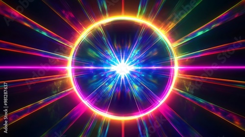Radiating Neon Light Burst, futuristic flashes, Motion lights, Colorful Streaks on Dark Background