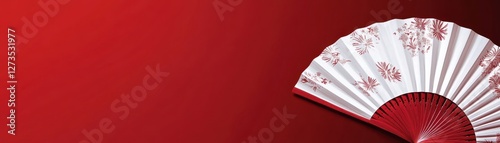 Radiating Sensu folding fan motifs in white on a deep red background, stylish and culturally rich
