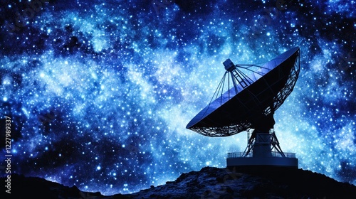 Radio Telescope Silhouetted Against A Starry Night Sky