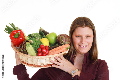 vegetable, basket, fruit, girl, model, bell pepper, aubergine, artichoke, carrot, courgette, onion, savoiard, apple, orange, bit, biting, eat, mandarine, woman, introduce, holding, presentation, suggest, sell, greengrocer, lemon, shallot, isolated, eatery, cater, food, food, nature, garden, vegetable, colours, colourful