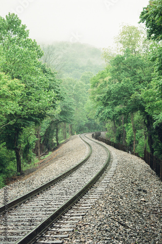 tree, travel, train, track, railroad, mountain, mist, green, freight, fog, blue ridge