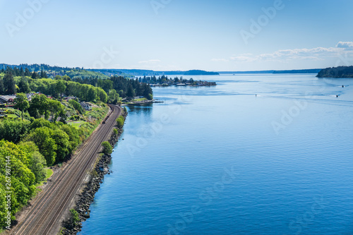 track, railroad, landscape, waterway, transportation, narrow, outdoors, scenic, tree, water