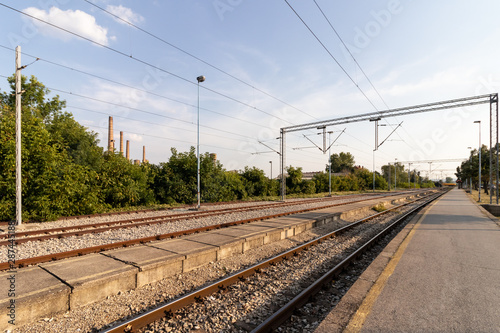 clear day, direction, early autumn, empty, europa, grass, industrial area, parallel, perspective, pillar, pipe, railroad, rail, road, sky, summer, territory, tree, uninhabited, wire