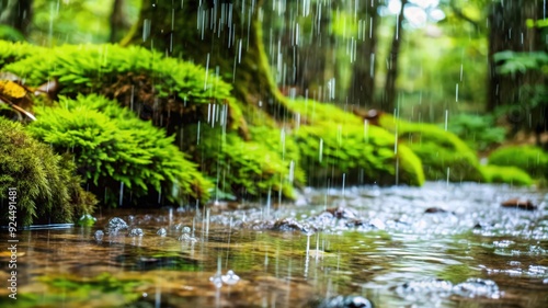 rain, forest, stream, water, green, moss, drop, nature, lush, timberland, foliage, creek, dripping, vibrant, droplet, cascading, tranquil, peaceful, serene, wilderness, canopy, environment, natural, fresh, clean, life, flowing, wet, damp, soft, mossy, shallow, background, blur, bokeh