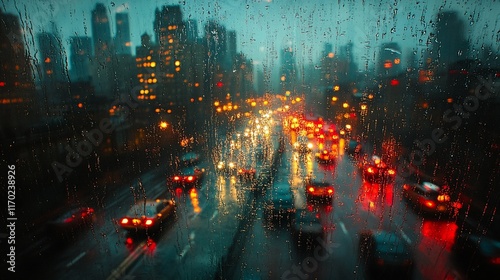 rain, window, city, night, traffic, light, car, blurred, streak, wet, dark, urban, city landscape, view, glasses, droplet, bokeh, moody, atmosphere, abstract, transportation, background, texture, pattern, perspective, vibrant, colours, orange, red, teal, mysterious, gloomy, evening, street, building, skyscraper, driving, journey, travel, movement, speed, motion