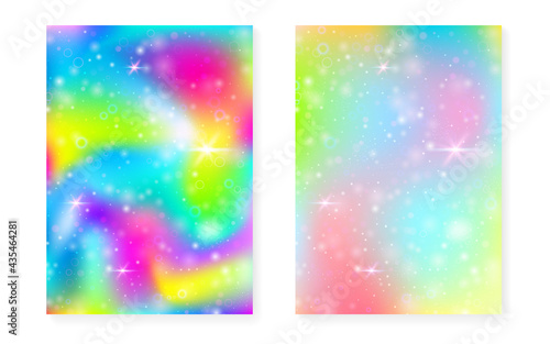 Rainbow background with kawaii princess gradient. Magic unicorn hologram.