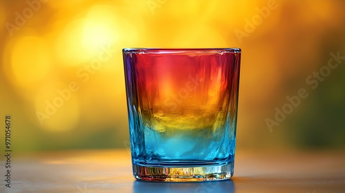 Rainbow Glass Cup on Blurred Background - Photography