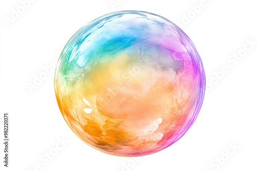Rainbow gradient bubbles floating on a vibrant abstract background with light reflections and bokeh effect - Generative ai. Beautiful simple AI generated image