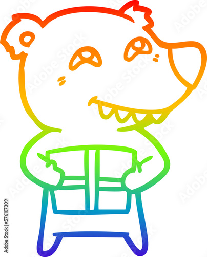 bear, animal, teeth, showing, cute, cartoon, rainbow, line, gradient, spectrum, drawing, illustration, retro, doodle, freehand, free, hand, drawn, quirky, art, artwork, funny, character, present, gift