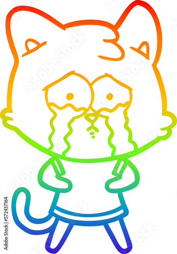 rainbow gradient line drawing cartoon crying cat