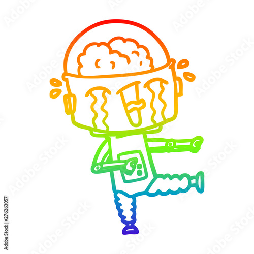 rainbow gradient line drawing cartoon crying robot pointing