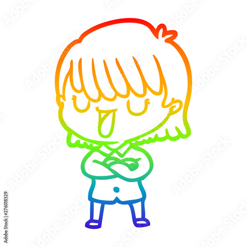rainbow gradient line drawing cartoon woman