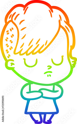 woman, female, girl, cartoon, rainbow, line, gradient, spectrum, drawing, illustration, retro, doodle, freehand, free, hand, drawn, quirky, art, artwork, funny, character, cute