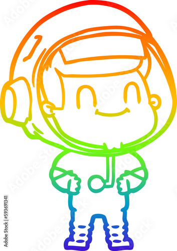 rainbow gradient line drawing happy cartoon astronaut man