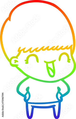 rainbow gradient line drawing happy cartoon boy