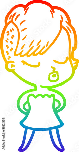 rainbow gradient line drawing of a cartoon pretty hipster girl