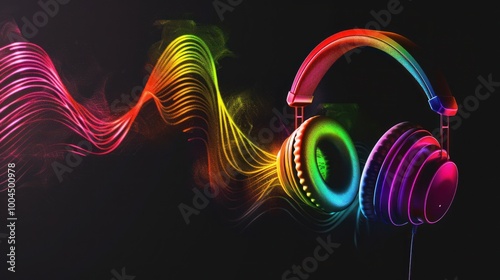 earphones, music, audio, sound, wave, rainbow, colourful, glowing, vibrant, abstract, technology, digital, design, graphic, art, illustration, style, modern, concept, creative, futuristic, dynamic, energy, rythm, beat, melody, harmony, soundtrack, symphony, audiophile, listen, enjoy, entertainment, media, dark, background, black