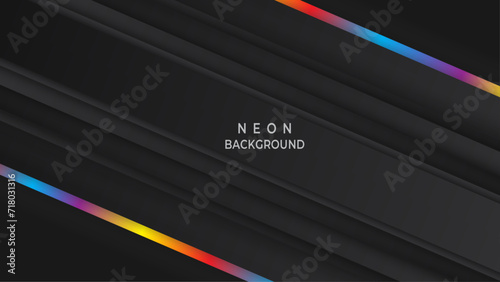 Rainbow list on stripe black background. Connected lines asbtract sahpe. Minimalism chaotic illustration background.